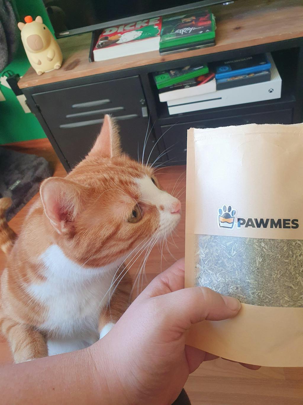 Streue etwas Katzenminze in ein Spielzeug, ein Stoffbeutelchen oder biete sie direkt zum Wälzen und Spielen an. So können Katzen die volle Katzenminze Wirkung genießen.